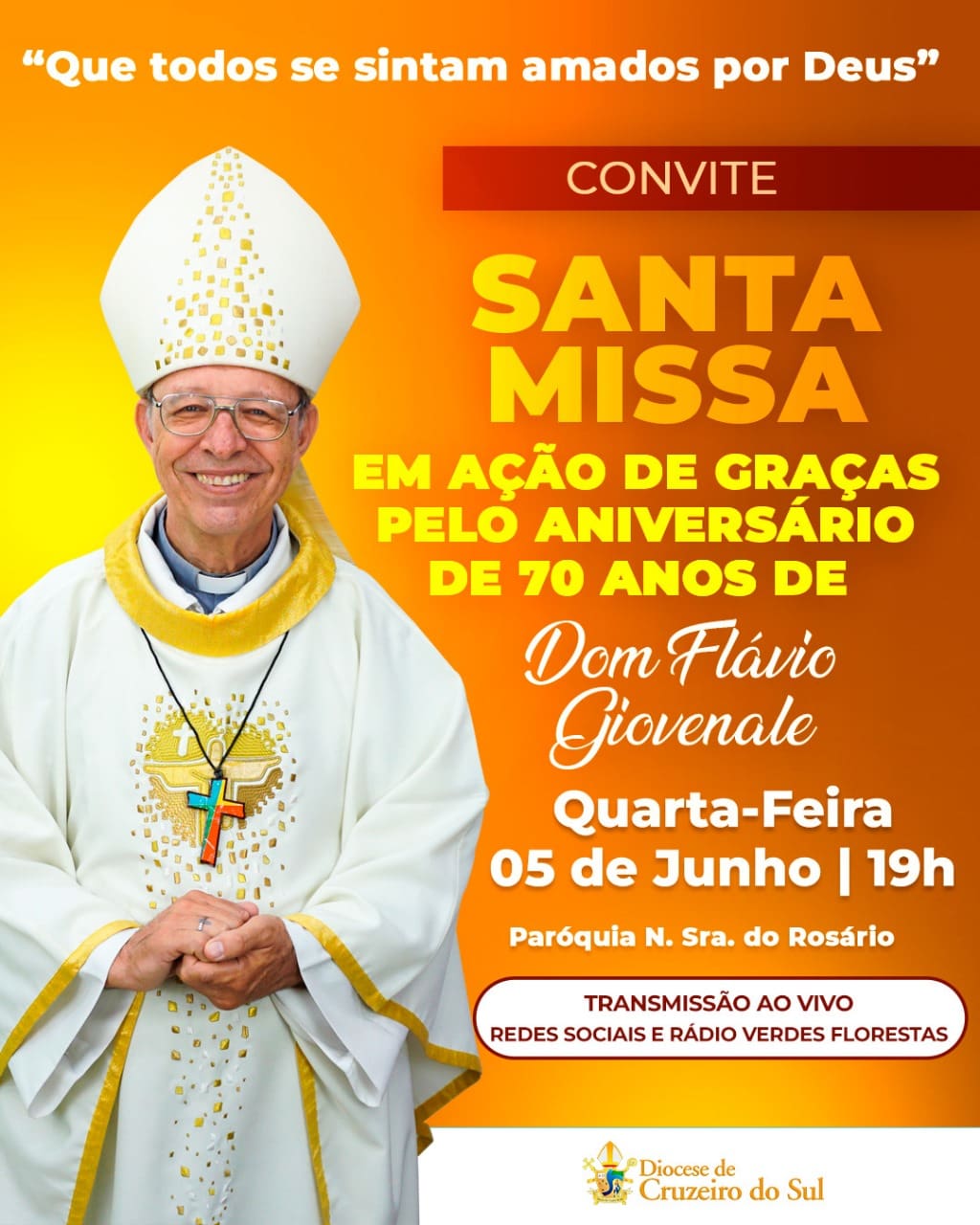 Santa Missa pelo Aniversário de Dom Flávio Giovenale – Cruzeiro do Sul (AC) + Adicionar ao Calendário do Google + iCal / Outlook export Data 05/jun/2024 Expirado Tempo 19:00 Categoria Eventos Compartilhar Este Evento