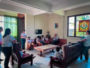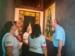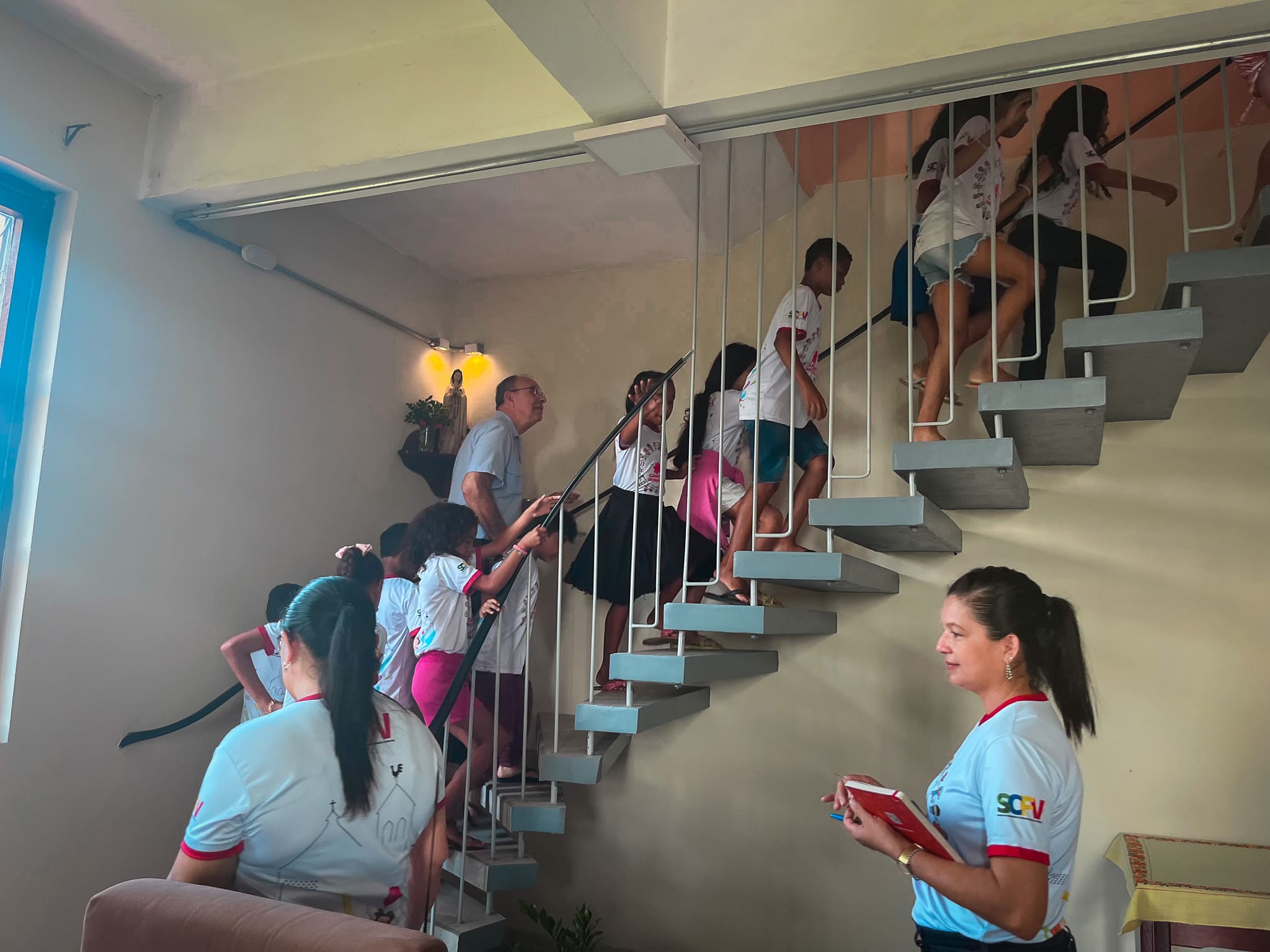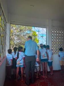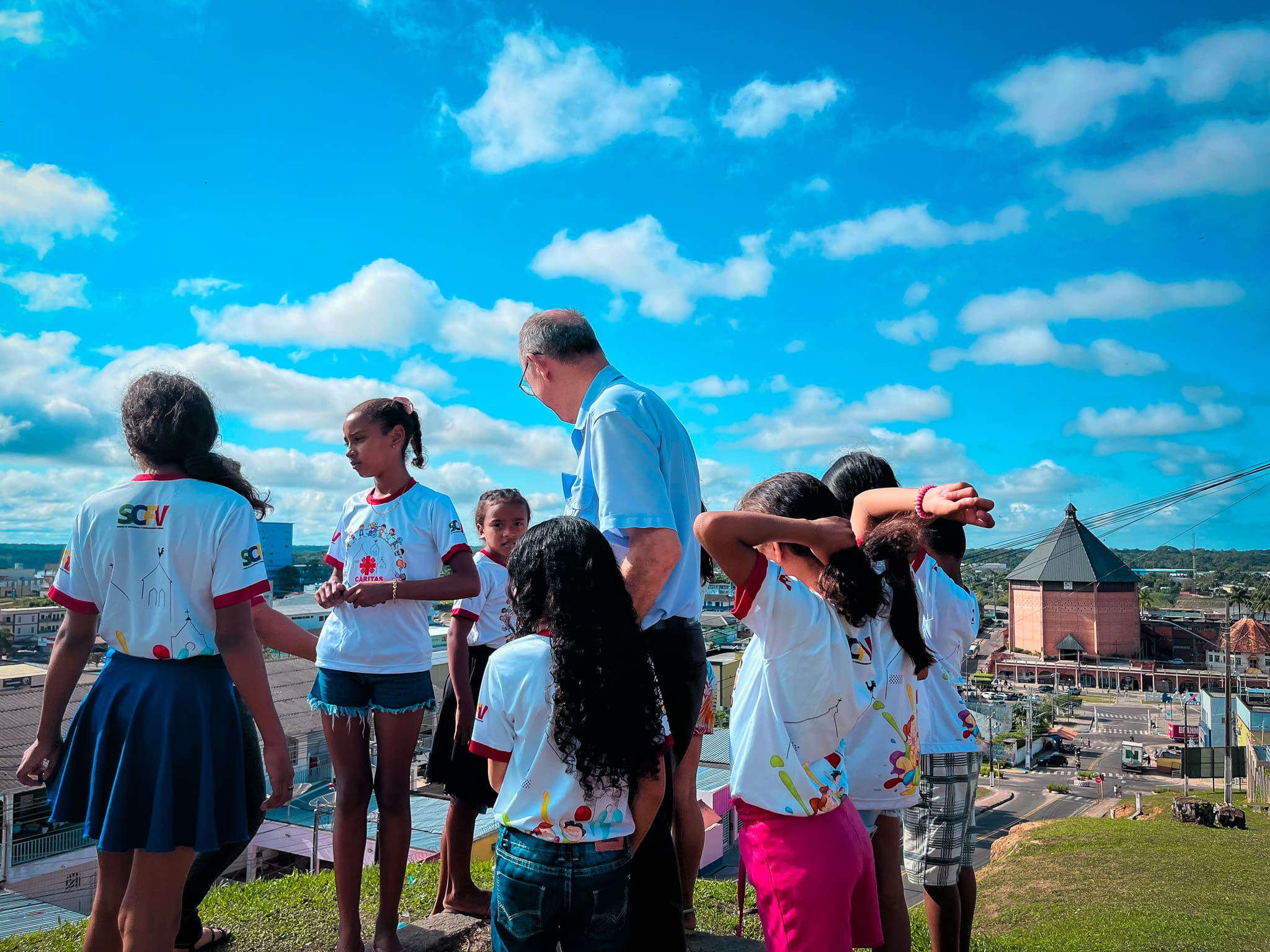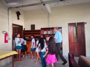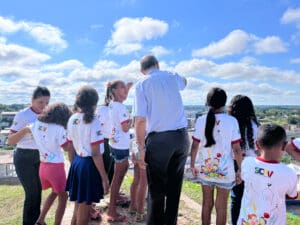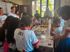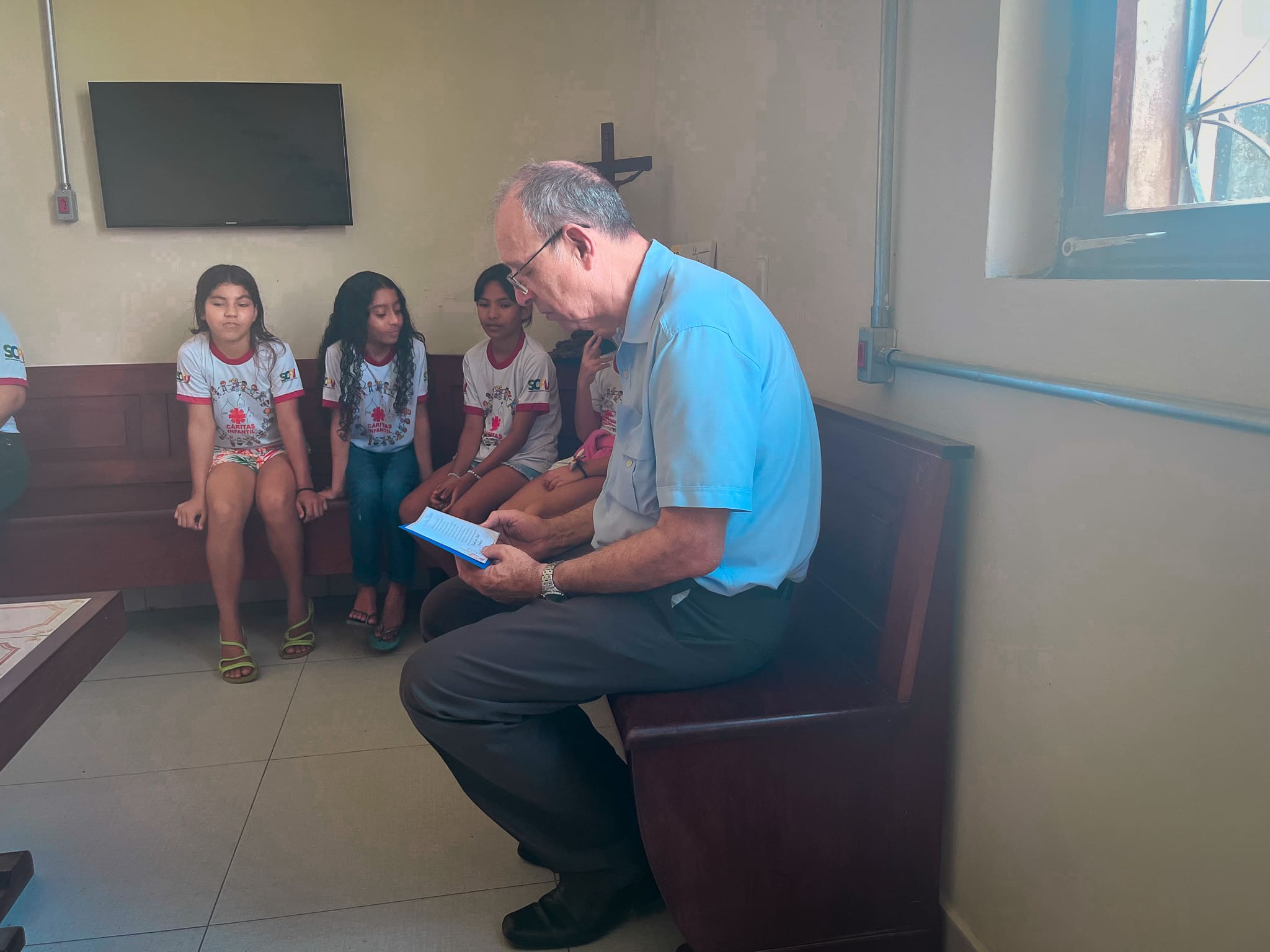 Foi feito uma roda de conversa entre Dom Flávio e as crianças, e elas foram fazendo algumas perguntas ao Bispo de curiosidades para conhecê-lo melhor. Foi uma manhã bem alegre ao lado das crianças, que ao final entregaram uma carta para Dom Flávio demonstrando o carinho pelo querido Bispo.