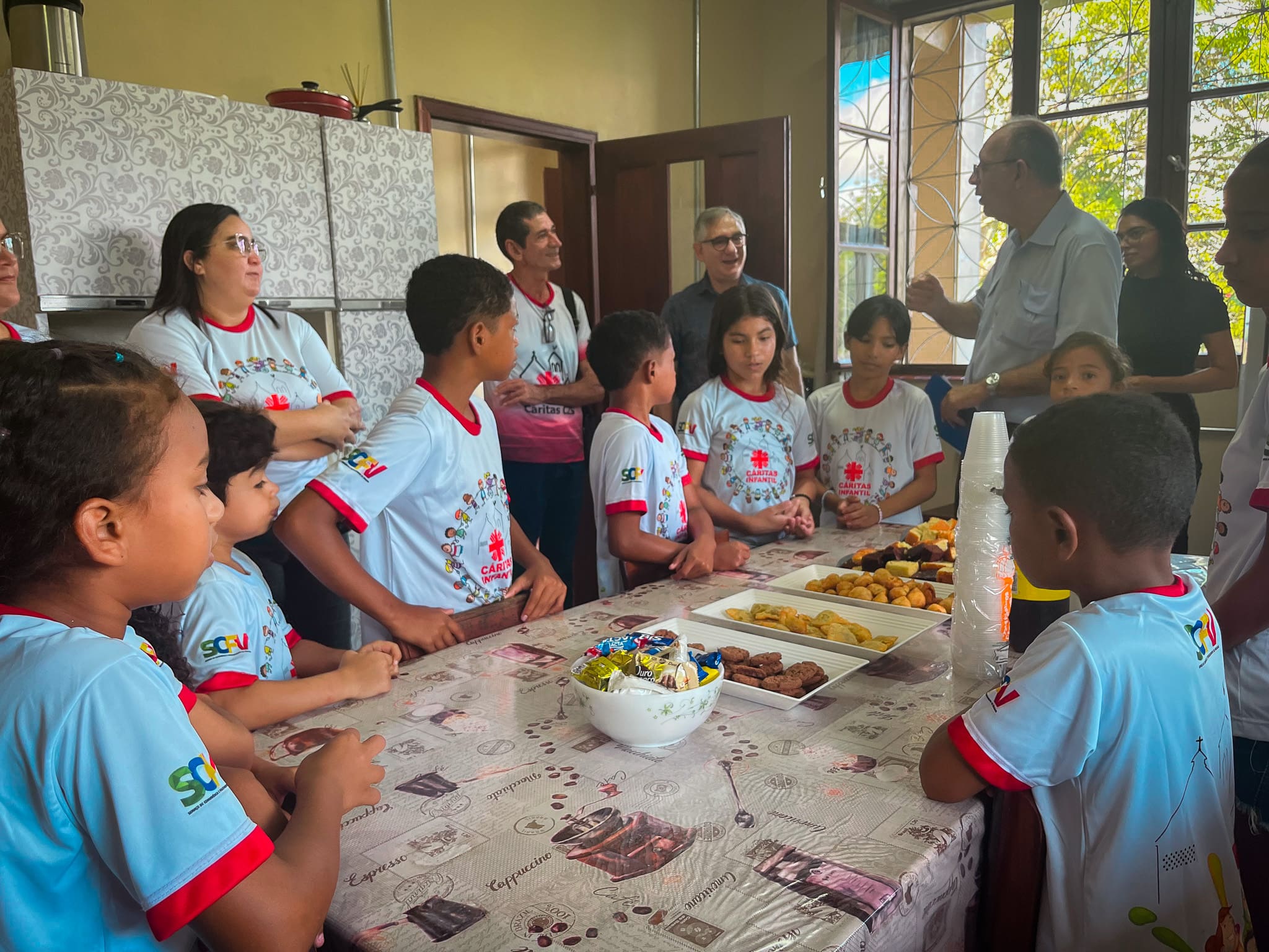 Na manhã desta quinta-feira (13) as crianças do projeto Cáritas Infantil fizeram uma calorosa visita ao Bispo Bom Flávio Giovenale. As crianças se reúnem duas vezes por semana para as atividades, e uma vez por mês e realizado a atividade de visitas. E neste mês de junho as crianças foram até a Cúria Diocesana para conhecer o Dom Flávio.