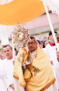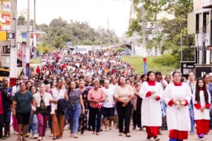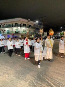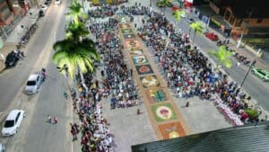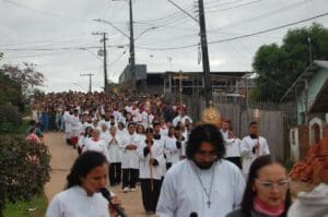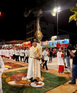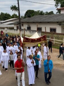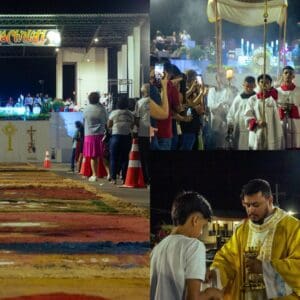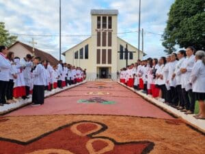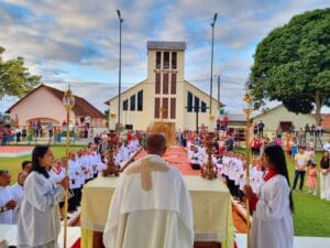 O dia de Corpus Christi, este ano de 2024 foi celebrado no dia 30 de maio. As paróquias da Diocese de Cruzeiro do Sul celebraram este dia com muita fé e devoção. Também foram confeccionados os tradicionais tapetes, que lembram o momento em que Jesus chegou em Jerusalém, quando os fiéis jogaram ramos que forraram o caminho por onde ele passou. As 12 paróquias da diocese e áreas missionárias celebraram a solenidade de Corpus Christi. Em cruzeiro do Sul as 03 paróquias da Cidade (Nossa Senhora Aparecida, Nossa Senhora da Gloria, Nossa Senhora do Rosário) celebraram em unidade, onde as comunidades foram em procissão até a praça central da cidade e em seguida foi celebrada a Santa Missa foi presidida pelo Bispo Dom Flávio Giovenale.