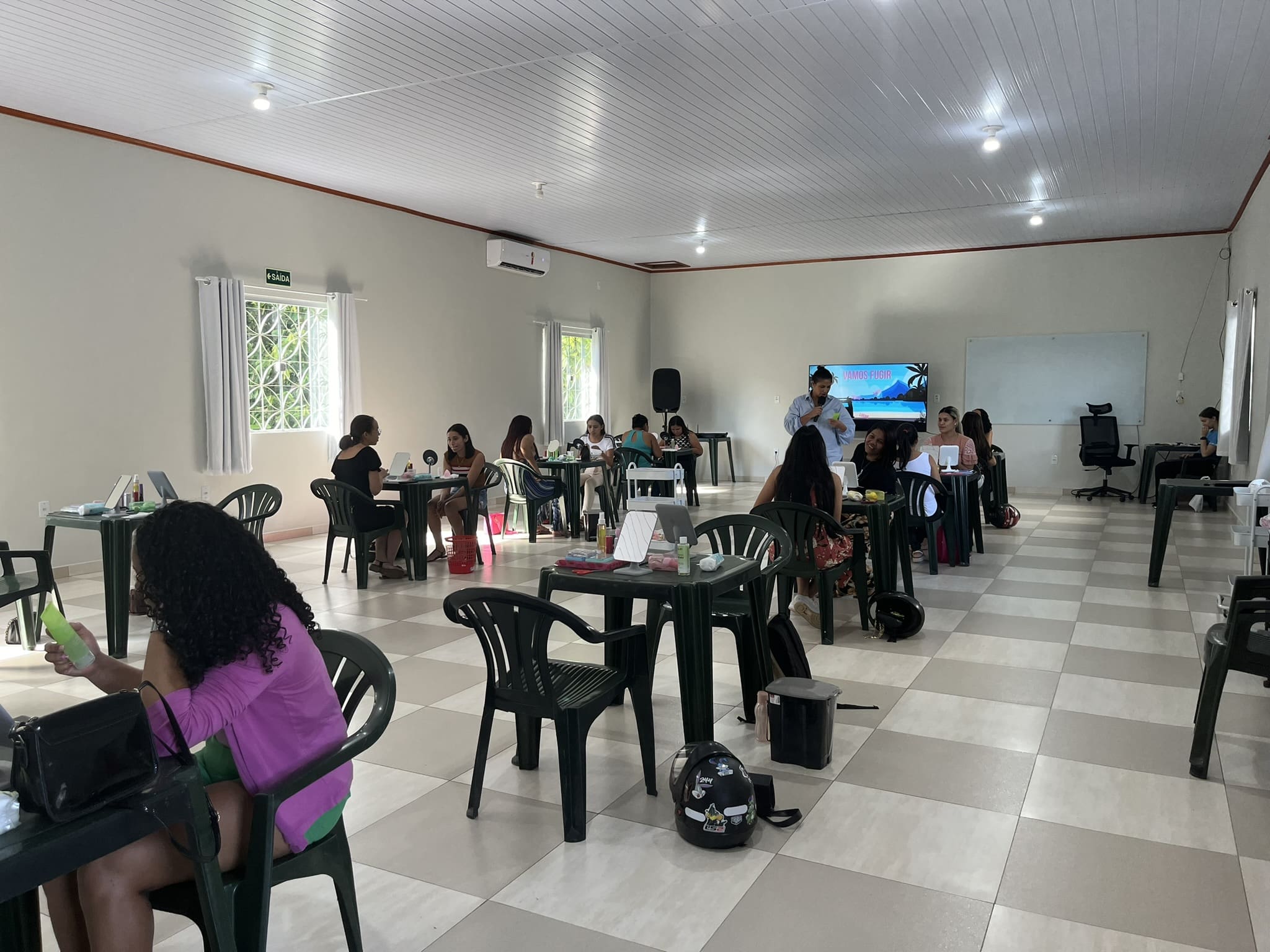 O curso é ministrado pela instrutora/maquiadora Patrícia Ferreira Marques; no último sábado (11 de maio) , já tivemos a primeira turma certificada, e uma aluna foi sorteada com um kit de maquiagem. A última turma do curso será com as mulheres da Aldeia Indígena Tamãkãiã na Br364.
