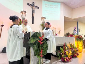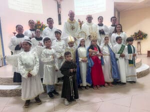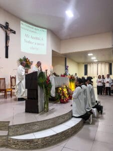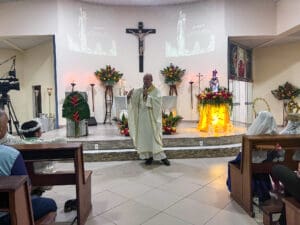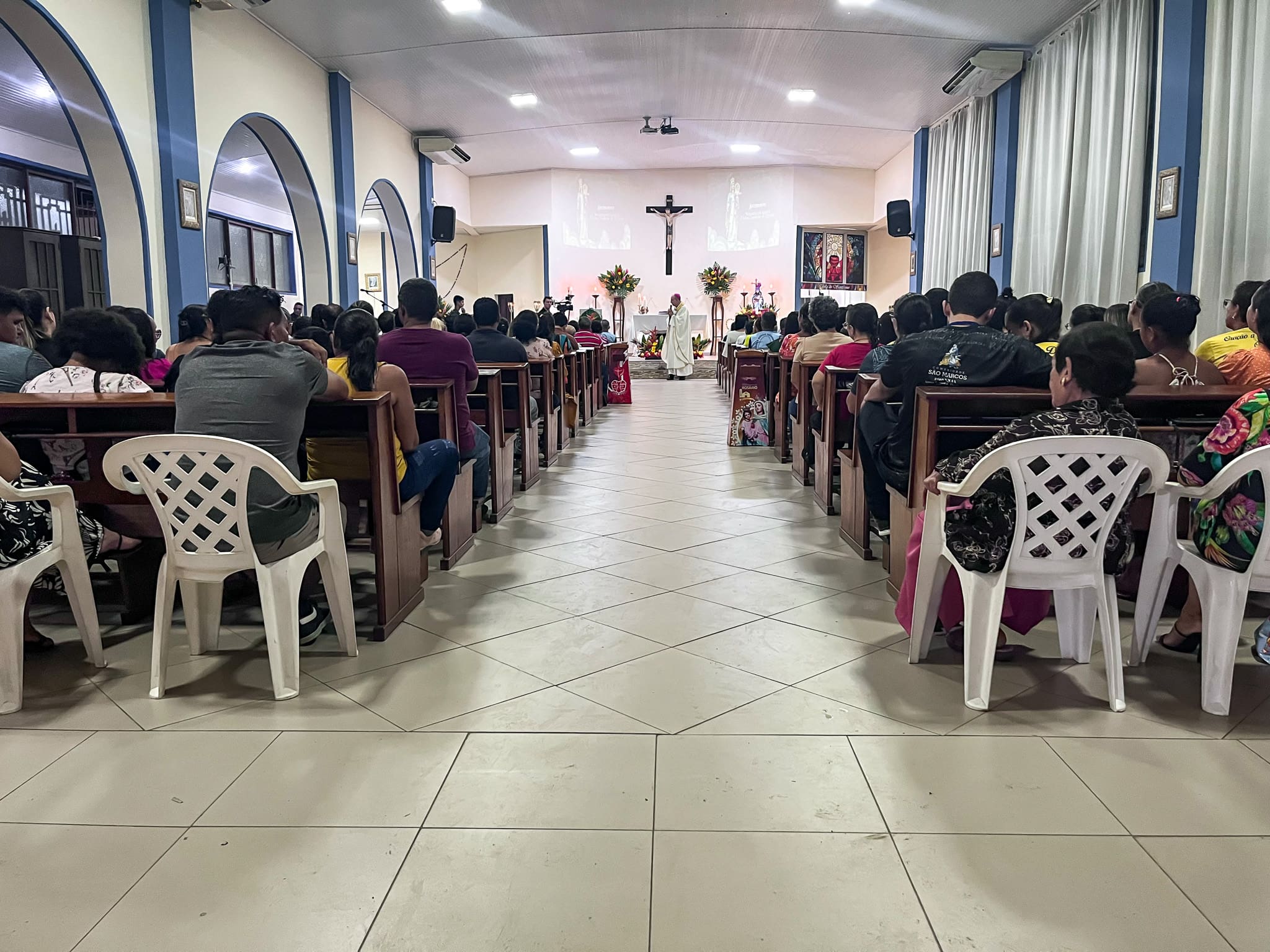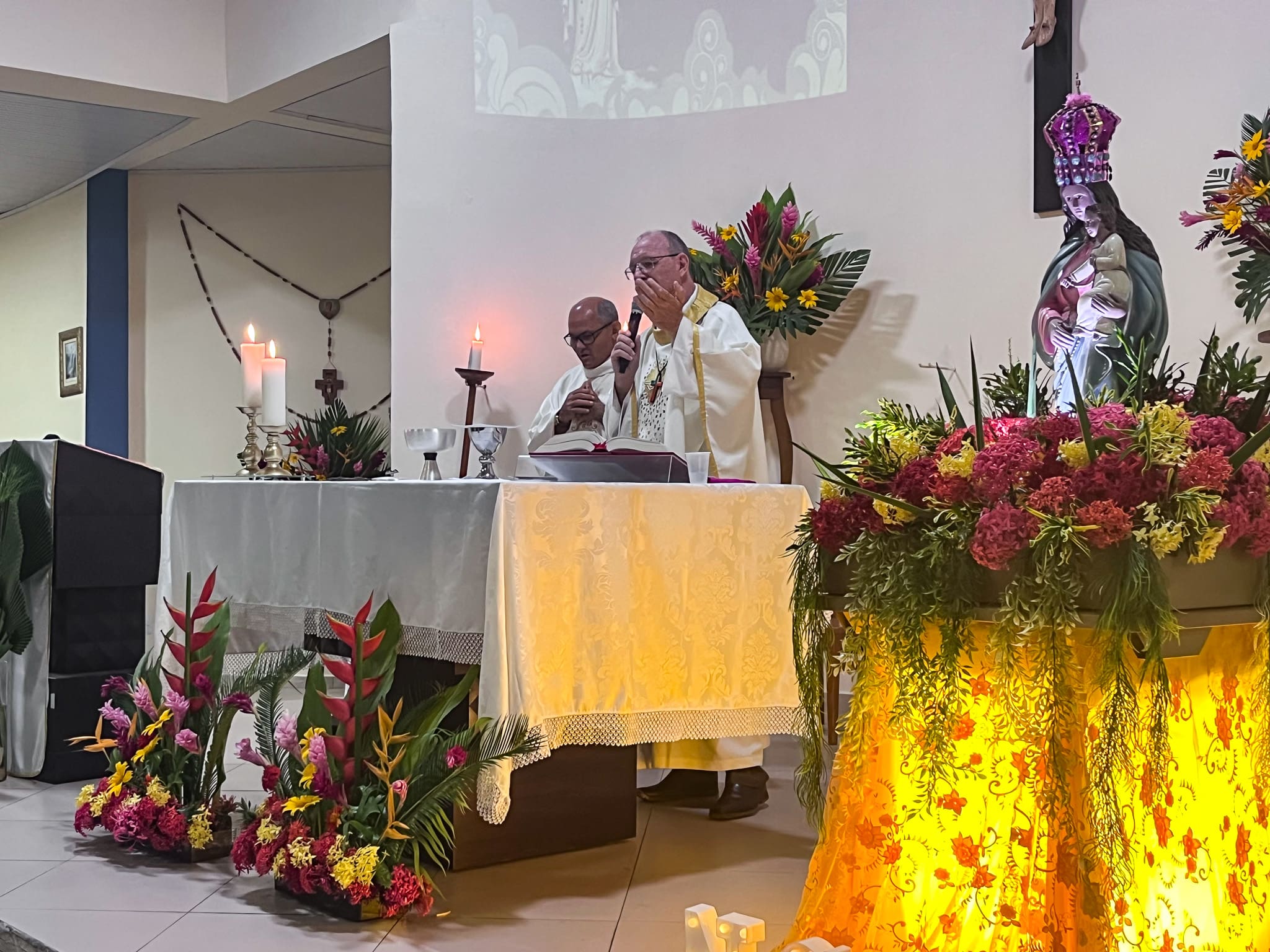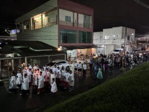 Aconteceu no último sábado dia 25 de maio, o encerramento do novenário em Honra Nossa Senhora do Rosário na cidade de Cruzeiro do Sul (AC). A Celebração aconteceu na igreja Matriz da Paróquia do Rosário, com início às 18h com a procissão e em seguida a Santa Missa celebrada pelo Bispo Dom Flávio Giovenale, S.D.B., e concelebrada pelo Pároco Pe. Pedro. Mesmo com a chuva, os fiéis se fizeram presente para vivenciar esse momento e fizeram uma linda procissão pelas ruas próximo a igreja Matriz.