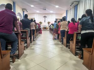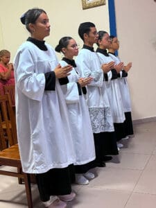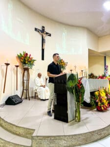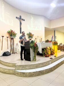 Logo após a Santa Missa, aconteceu a parte social do novenário, com vendas de comidas, realização do bingo e leilão, e apresentação musical com os músicos da paróquia.