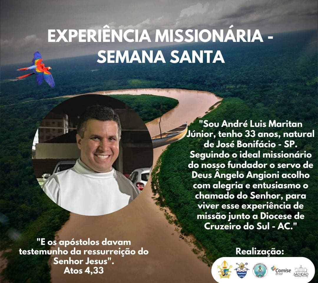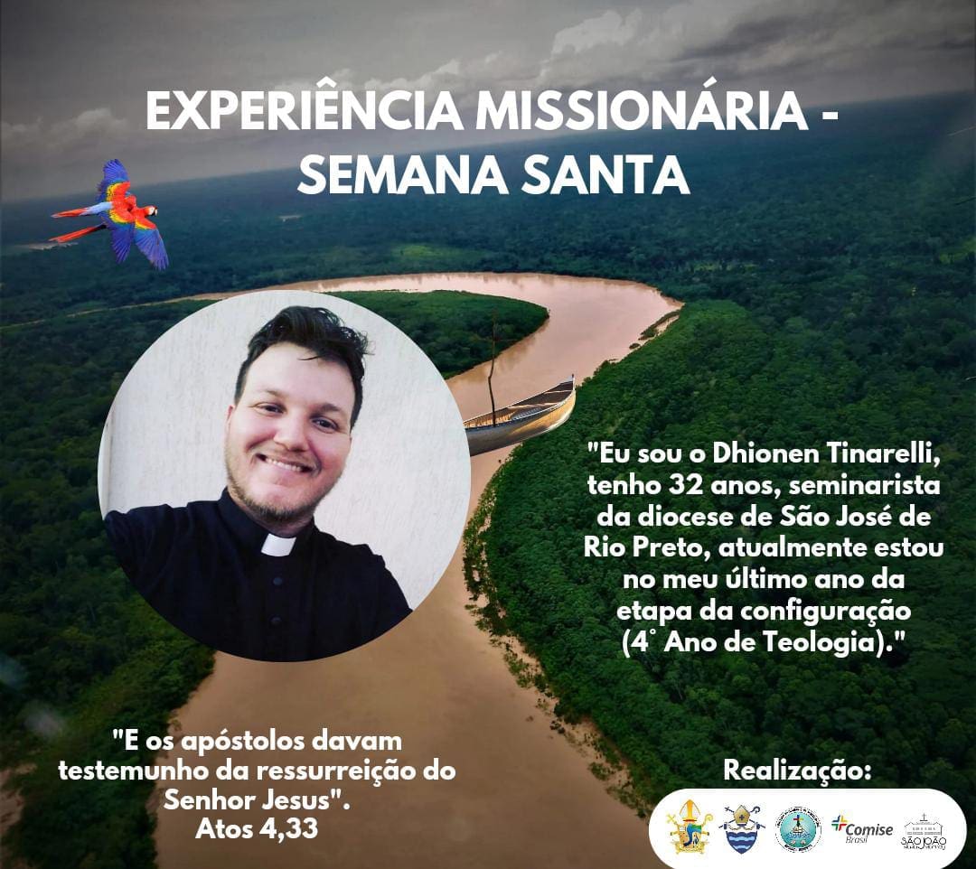 Entre os dias 26 a 31 de março, dias que celebramos os grandes mistérios de nossa fé – a Semana Santa – realizou-se a IV experiência Missionária do Seminário Maior São João Maria Vianney, com o tema: “Somos testemunhas do Crucificado-ressuscitado!” Este ano os seminaristas receberam com alegria os missionários da Diocese de São José do Rio Preto, interior de São Paulo. Contamos com a agradável presença das leigas Célia Bortoloto, Maria Angélica, dos seminaristas, André Luis Maritan (do Instituto Missionário Coração Imaculado de Maria), Dhionen Henrik Tinarelli, e o Padre Wagner Gonçalves.