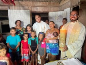 Os seminaristas Dhionen e André, que estão na última etapa da formação, comentam sobre os desafios e também o sentimento de pertencimento que agora eles têm com o nosso povo. “Para mim foi uma experiência nova e desafiadora, tinham muitas coisas ali que eu não estava habituado e nem conseguiria imaginar que seria daquela forma… foi satisfatório, conseguir anunciar Jesus Cristo e conseguir vencer meus medos, receios e preconceitos, foi fantástico” destaca Dhionen. André comenta que: “Para mim, foi minha primeira experiência missionária nessa dimensão, descer o rio, experimentar das dificuldades do povo simples, uma experiência que levo pra toda minha vida… eu passei a fazer parte da história da missão aqui, cada comunidade que passávamos o nome dos padres eram recordados, passar por onde esses grandes missionários passaram me marcou muito”. Uma experiência desafiante e cheia de surpresas que enchem o coração de alegria, Padre Wagner destaca “Algumas casas faziam 9 anos que não recebiam visita de um padre… é gratificante pelo fato de ali, mesmo diante da dificuldade, a gente ainda ver sorrisos, ainda ver esperança”.