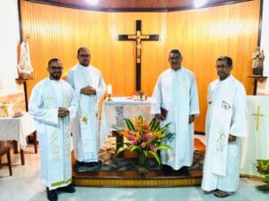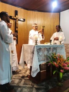 Celebrando as oitavas pascais o atual formador do Seminário, padre Leonildo Monteiro destacou na homilia: “Agradecemos a Deus pela colaboração de vocês como formadores de nossa instituição, cada um colaborando para colhermos os frutos no hoje de nossa diocese”.