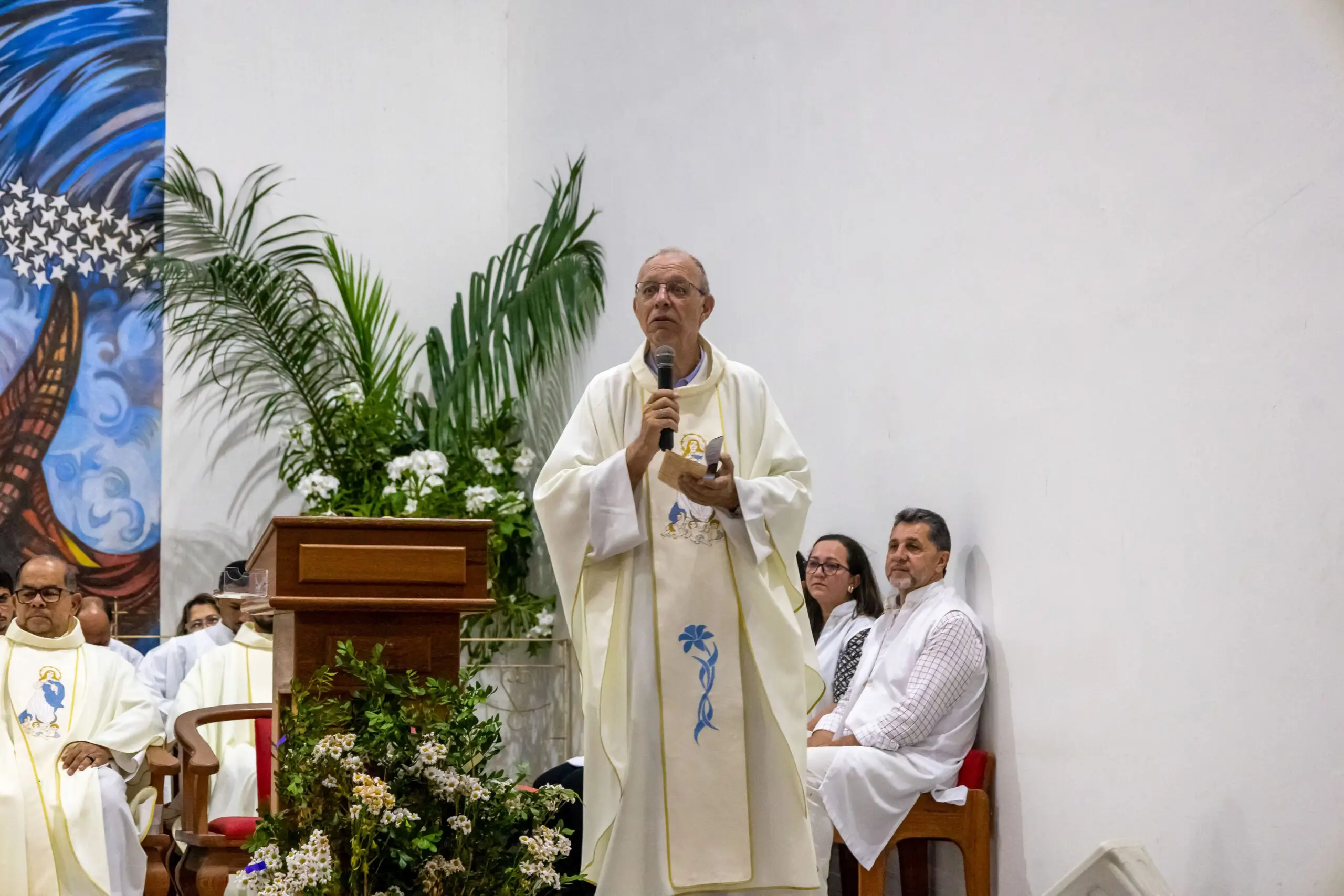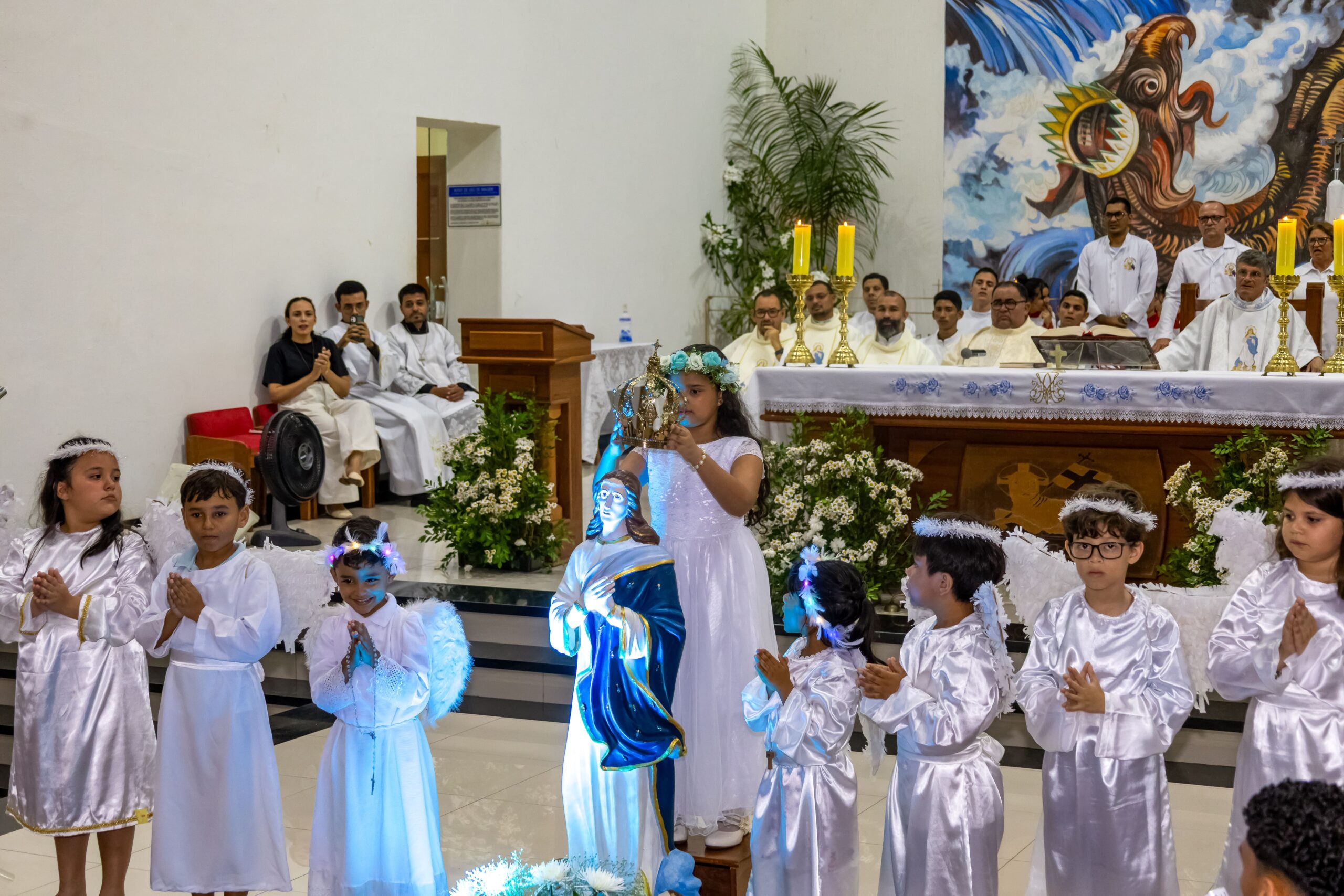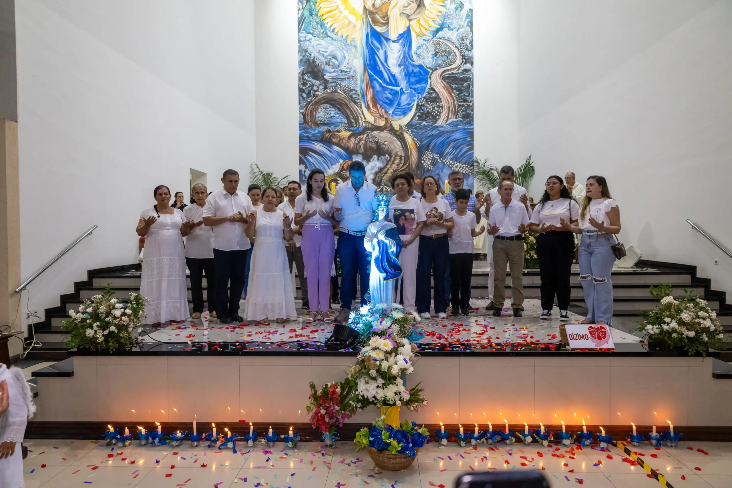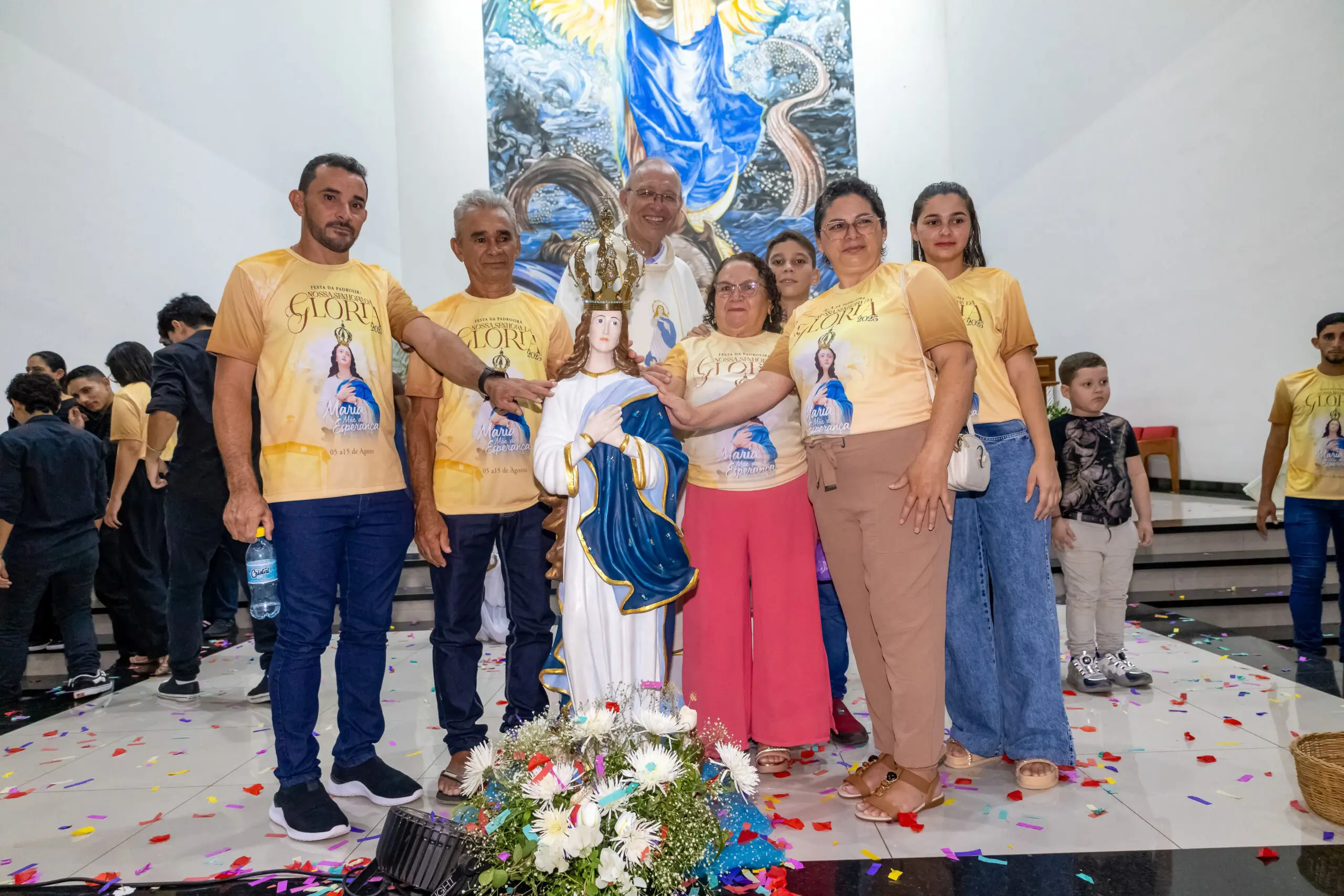 Na quinta-feira, dia 14 de agosto, foi celebrada a nona noite do novenário em honra a Nossa Senhora da Glória. A noite foi dedicada aos empresários, microempresários, empreendedores, lojistas, comerciantes, autônomos, artesãos e demais trabalhadores do comércio; com o tema: Com Maria, Mãe da Esperança, prosperamos com fé e responsabilidade. A santa missa foi presidida pelo Pe. Vittório.