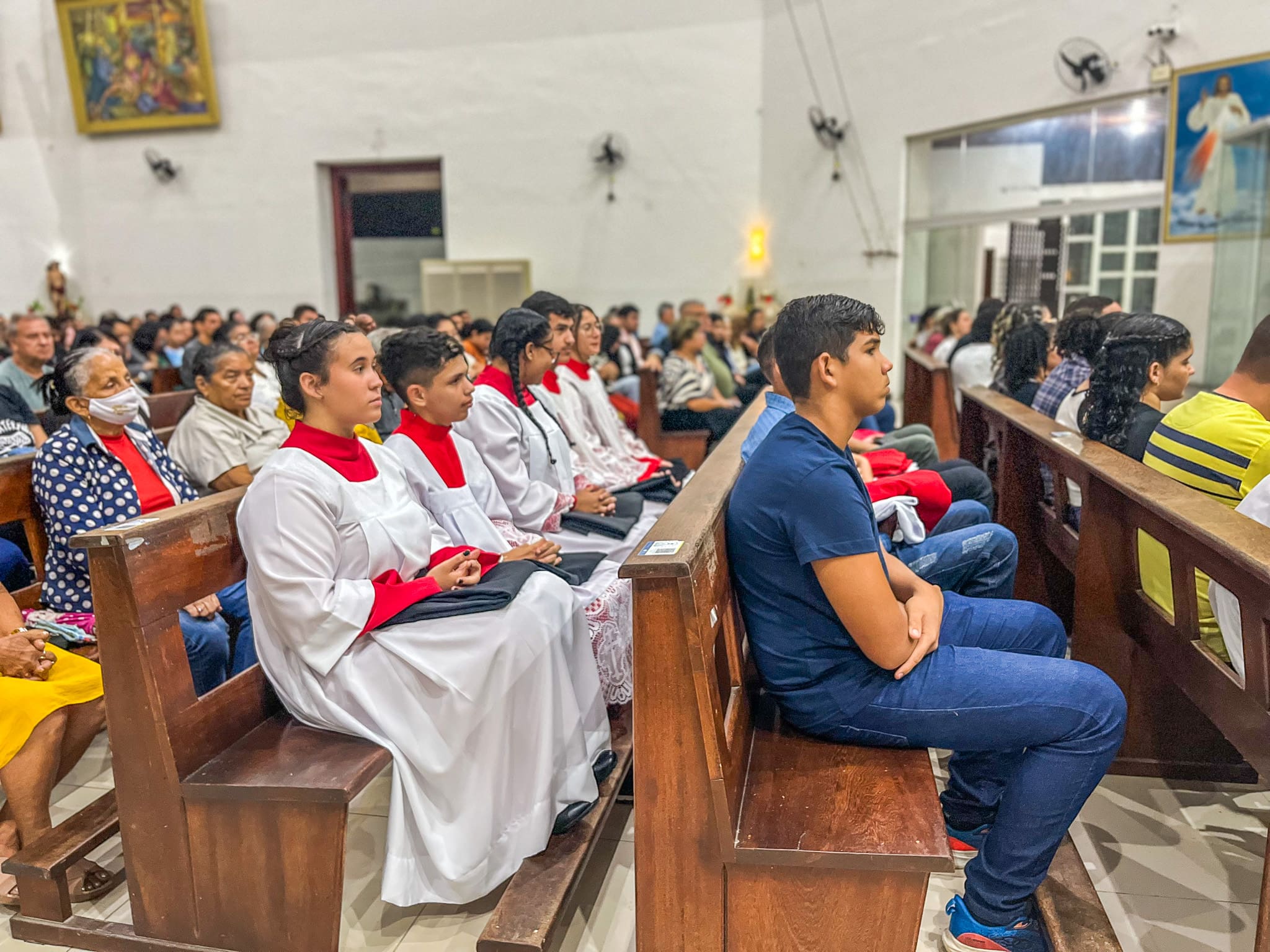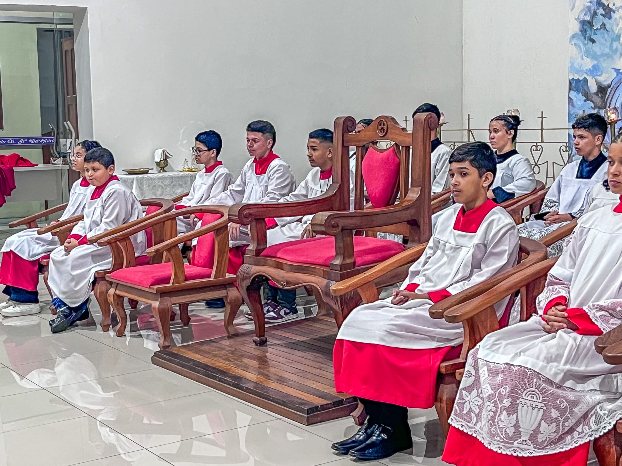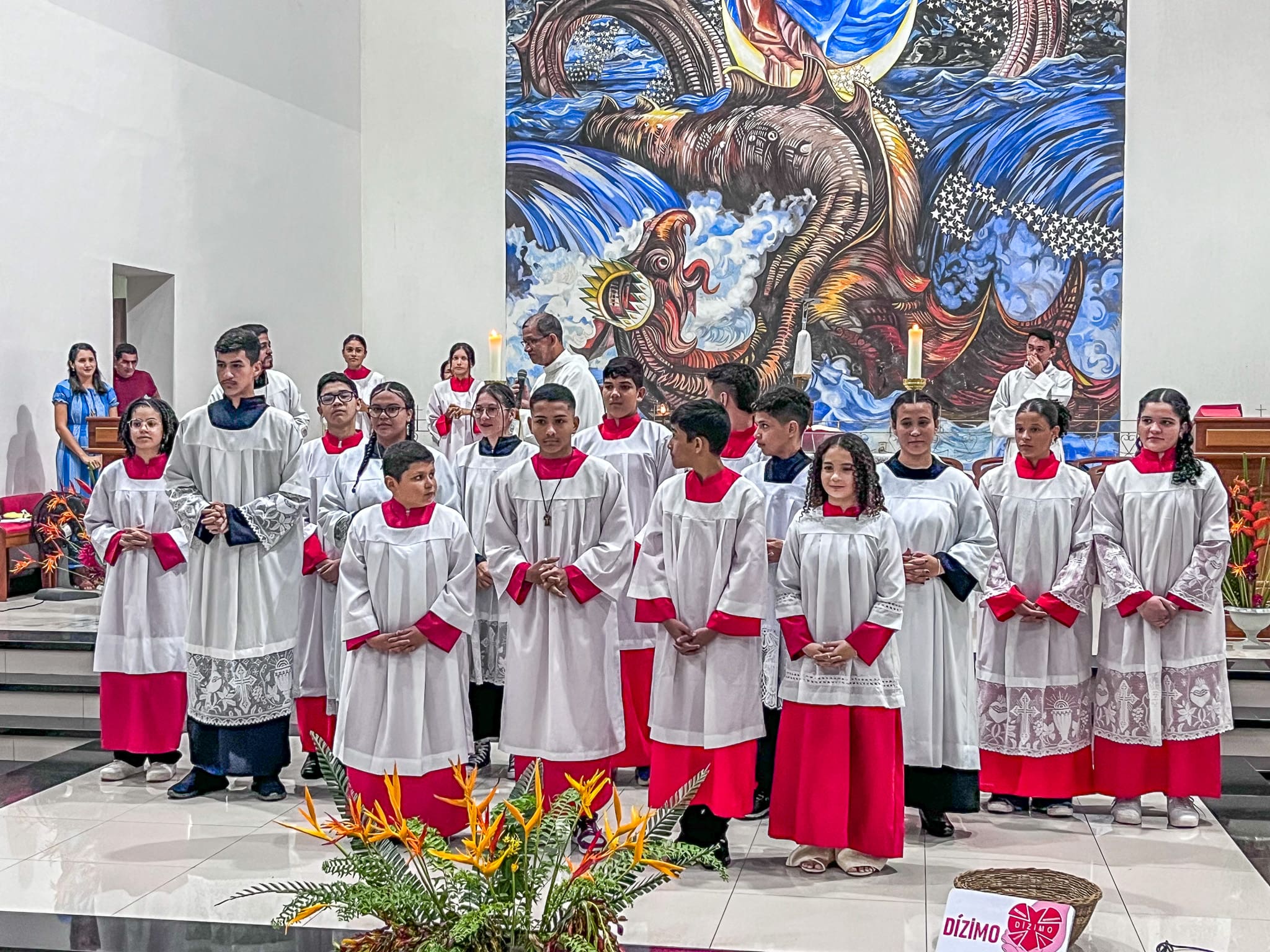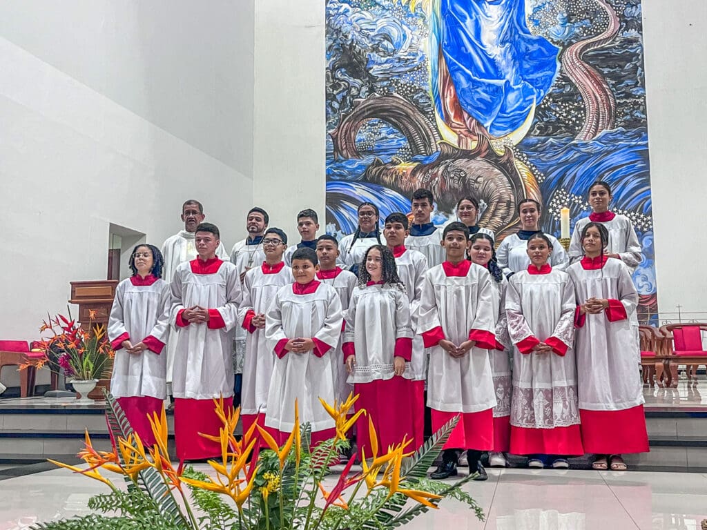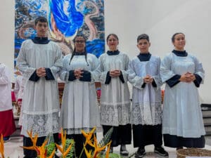 No domingo dia 26 de maio, a Paróquia Nossa Senhora da Glória em Cruzeiro do Sul (AC), acolheu 5 novos acólitos e 10 coroinhas. A admissão dos novos servidores do altar aconteceu durante a celebração da Solenidade da Santíssima Trindade, com missa presidida pelo vigário da paróquia Pe. Nilson, que abençoou as vestimentas e os enviou para essa importante missão.