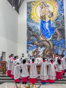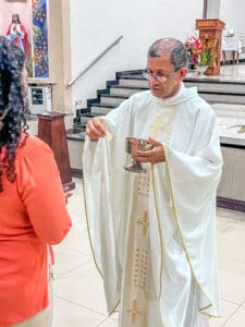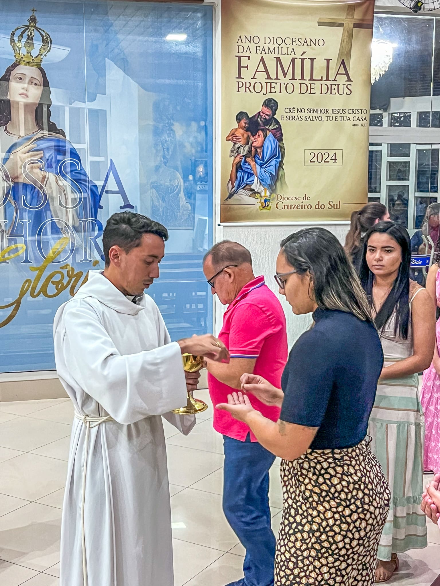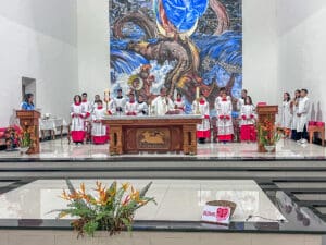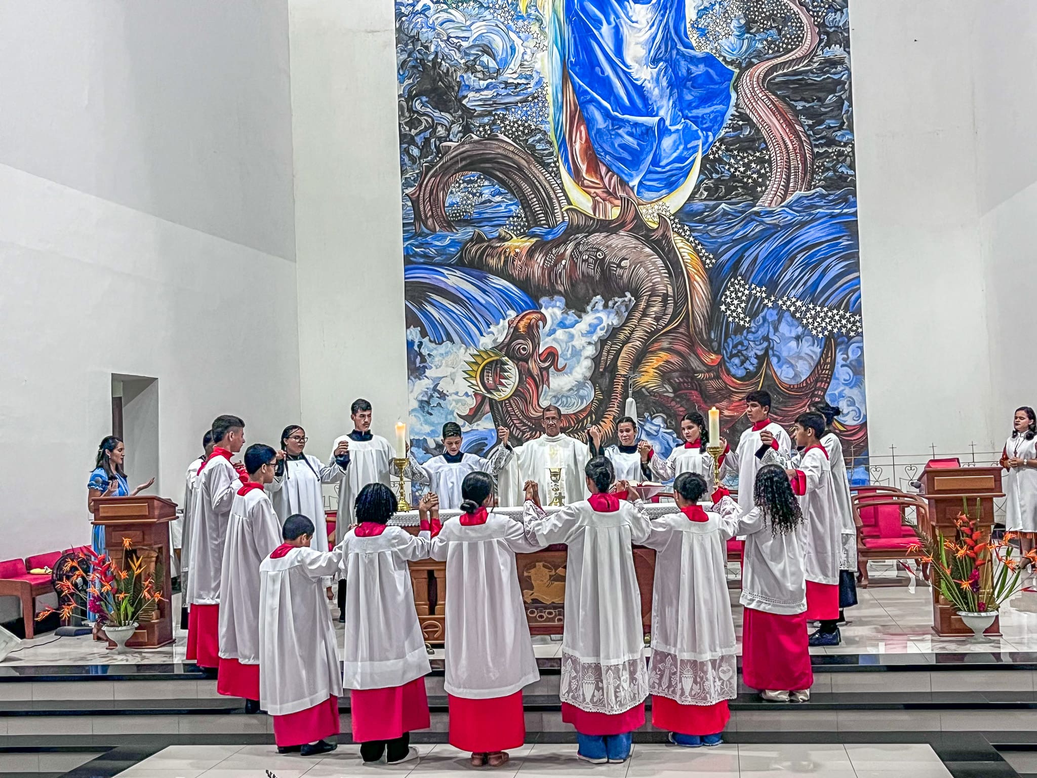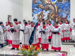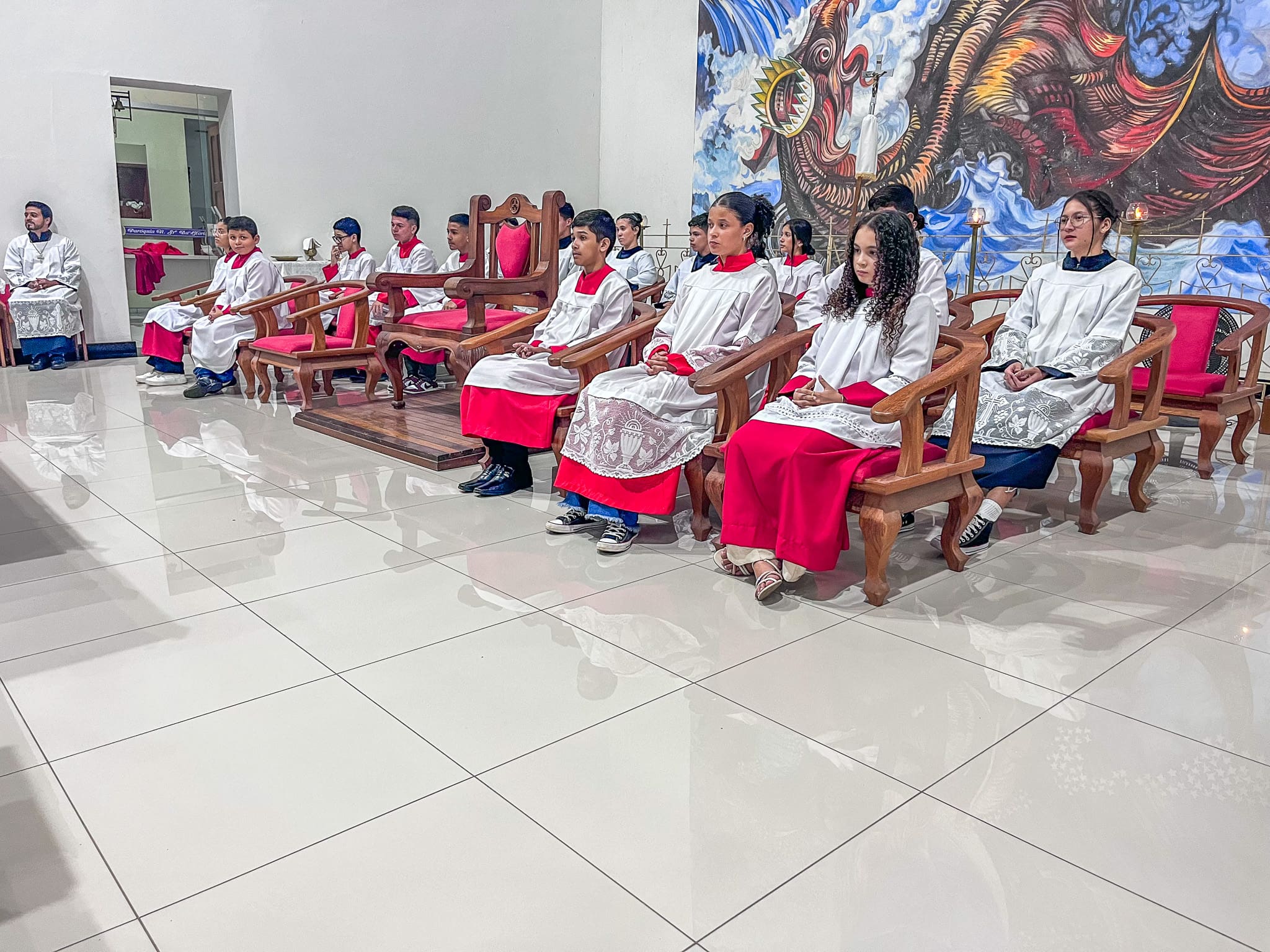 No domingo dia 26 de maio, a Paróquia Nossa Senhora da Glória em Cruzeiro do Sul (AC), acolheu 5 novos acólitos e 10 coroinhas. A admissão dos novos servidores do altar aconteceu durante a celebração da Solenidade da Santíssima Trindade, com missa presidida pelo vigário da paróquia Pe. Nilson, que abençoou as vestimentas e os enviou para essa importante missão.