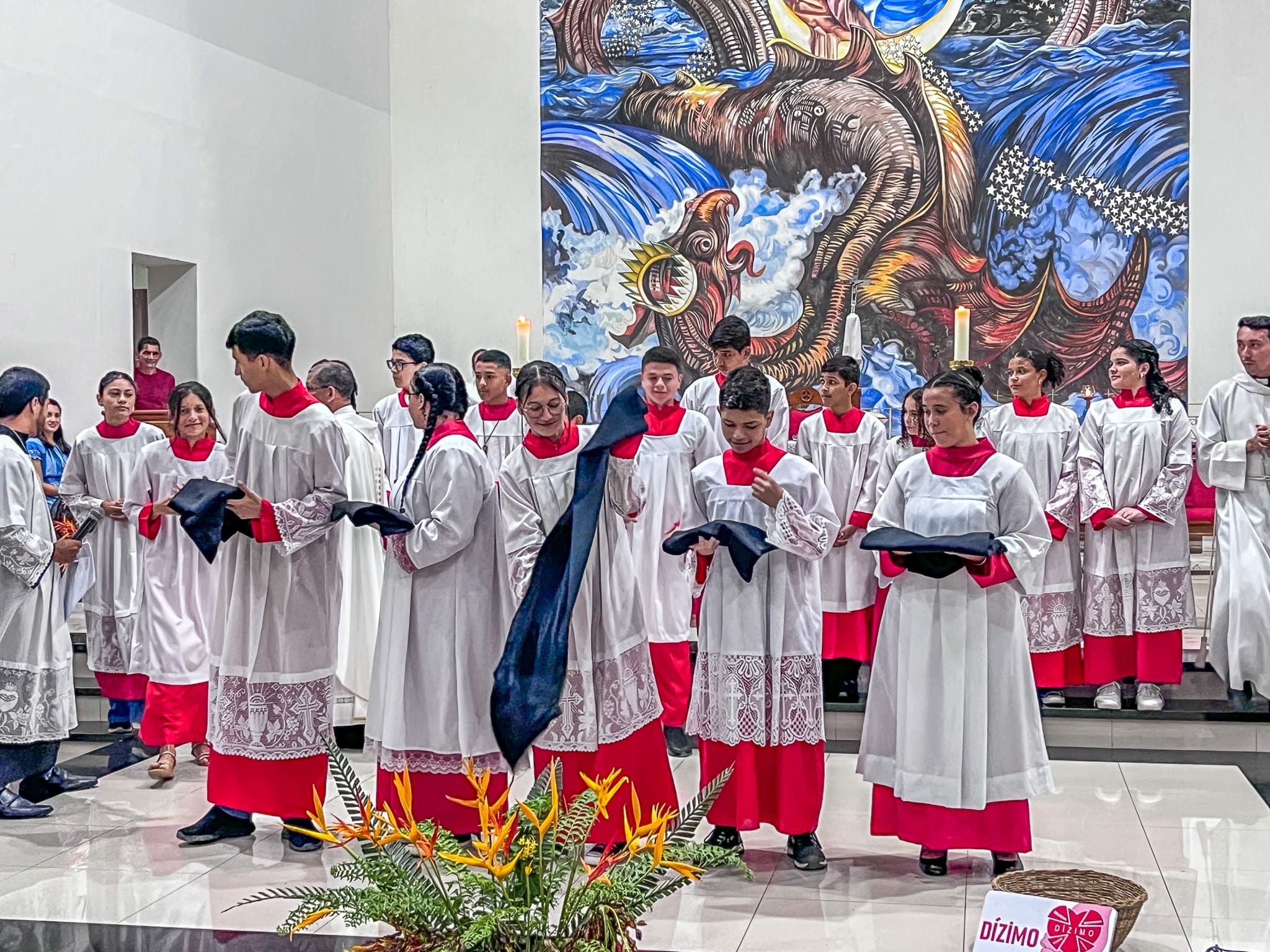 As crianças e adolescentes se “prepararam, estudaram, rezaram e foram motivadas, agora disseram seu ‘Sim, eu quero’ e com ajuda do coordenador e colaboração dos pais vão colocar a vestimenta sobre eles” destacou o Pe. Nilson. A vestimenta representa o serviço no altar, a obediência, em que nessa caminhada as crianças e os adolescentes vão amadurecer na fé com compromisso, fidelidade e compaixão.