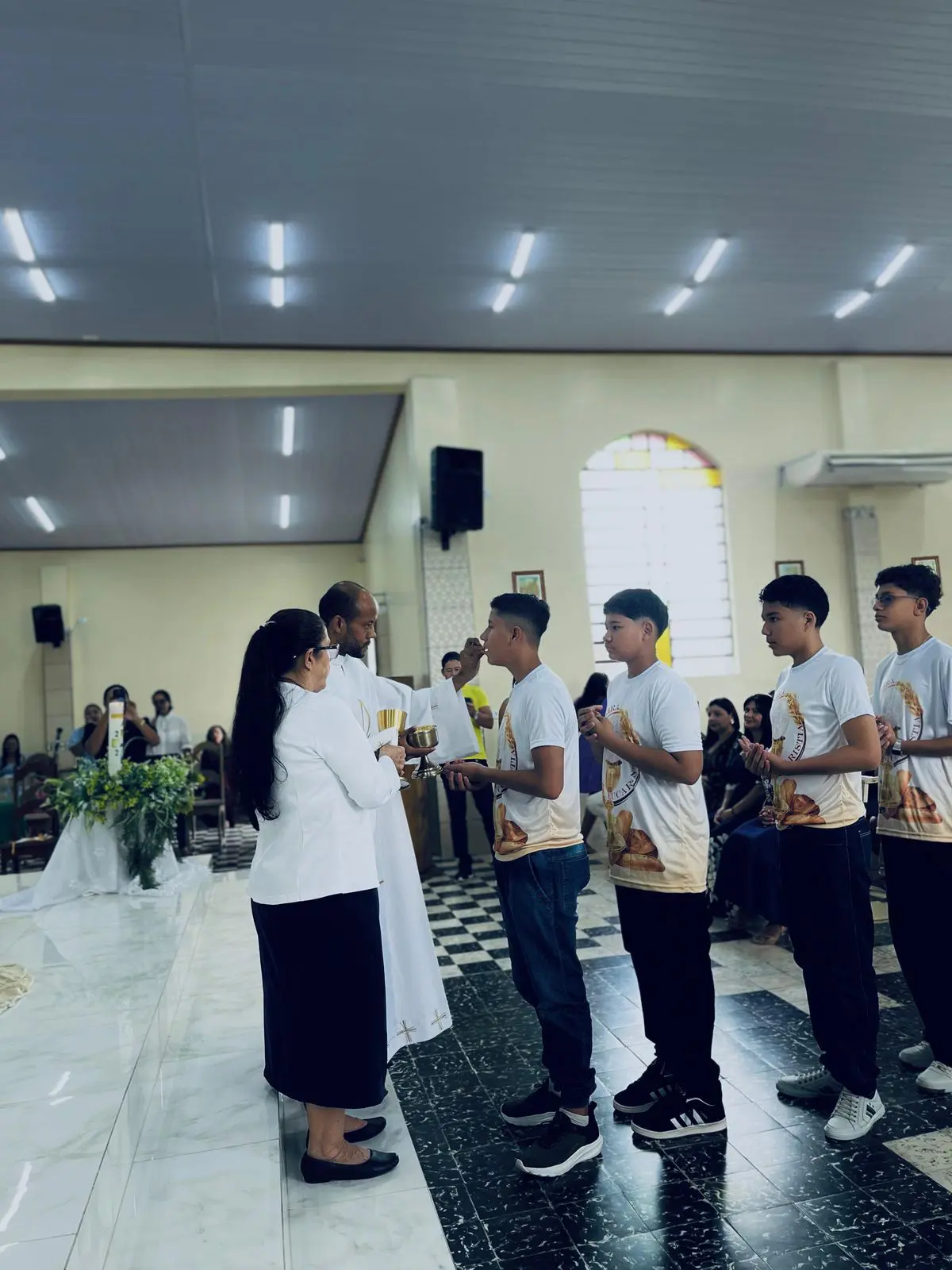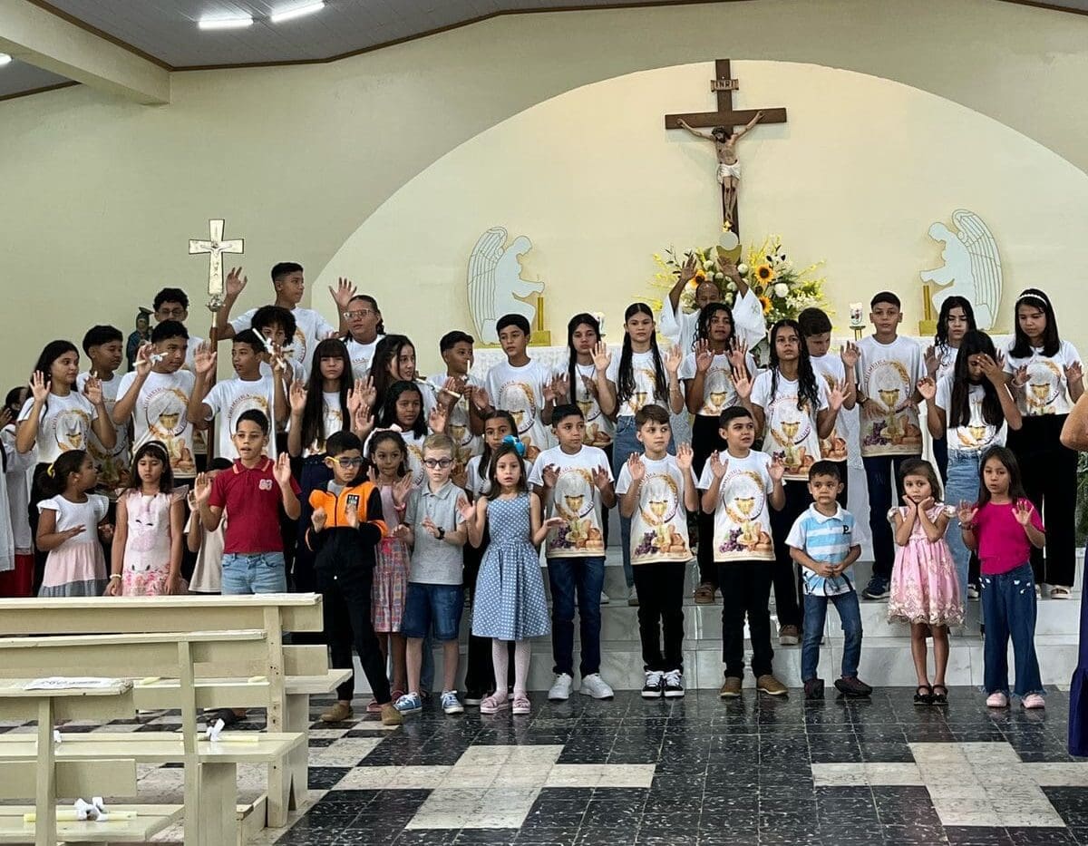 No último domingo, dia 25 de maio, na paróquia Nossa Senhora do Perpétuo Socorro do município de Envira (AM), os catequizandos receberam pela primeira vez a Sagrada Eucaristia na igreja Matriz. Foi um momento de graça, amor e renovação. No coração de cada criança agora carrega a presença viva de Cristo, que se fez pão para estar conosco em cada passo da caminhada.