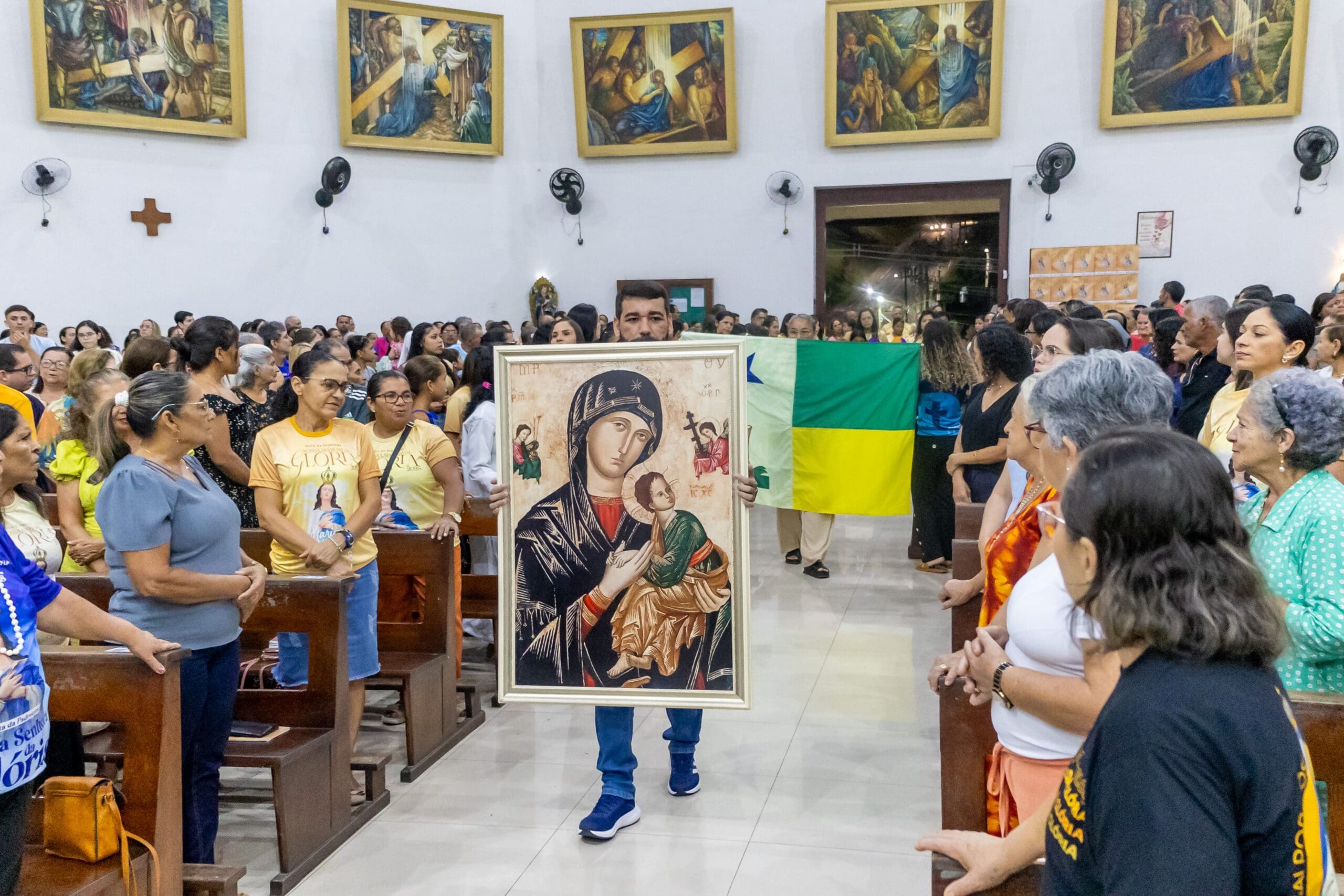 06 de agosto, quarta-feira, dia da Transfiguração do Senhor, marca o início da primeira noite do Novenário em honra a Nossa Senhora da Glória. A Santa Missa foi presidida pele Pe. Leonildo Monteiro. A noite foi dedicada aos Artistas, e o município homenageado foi Feijó (AC).